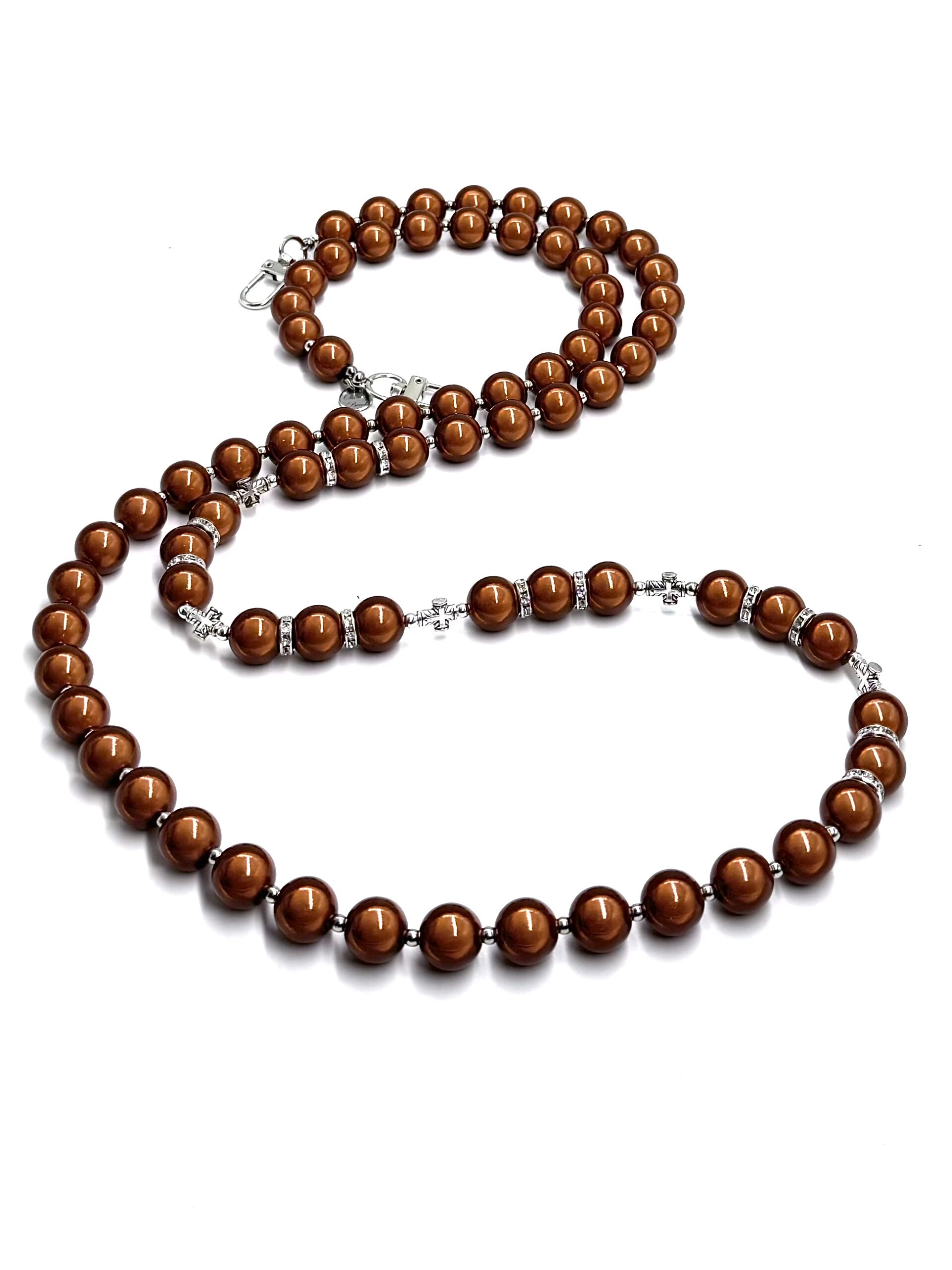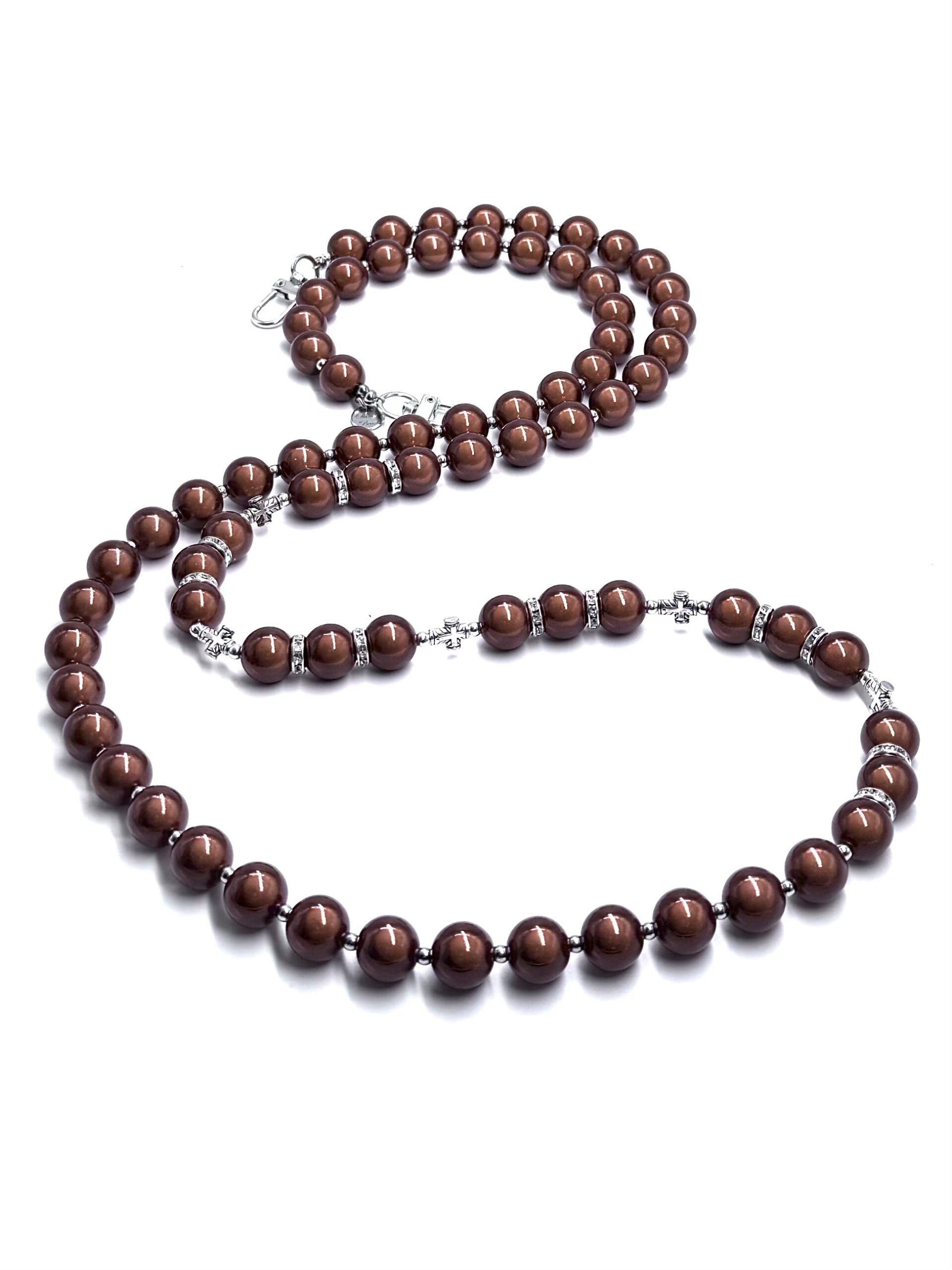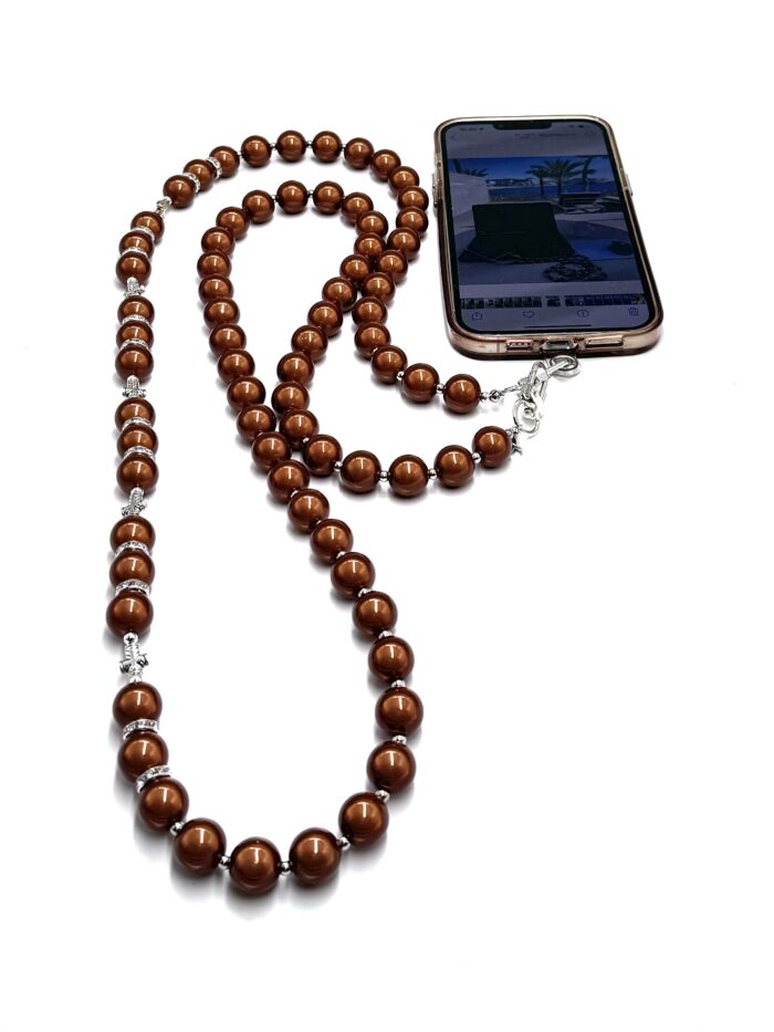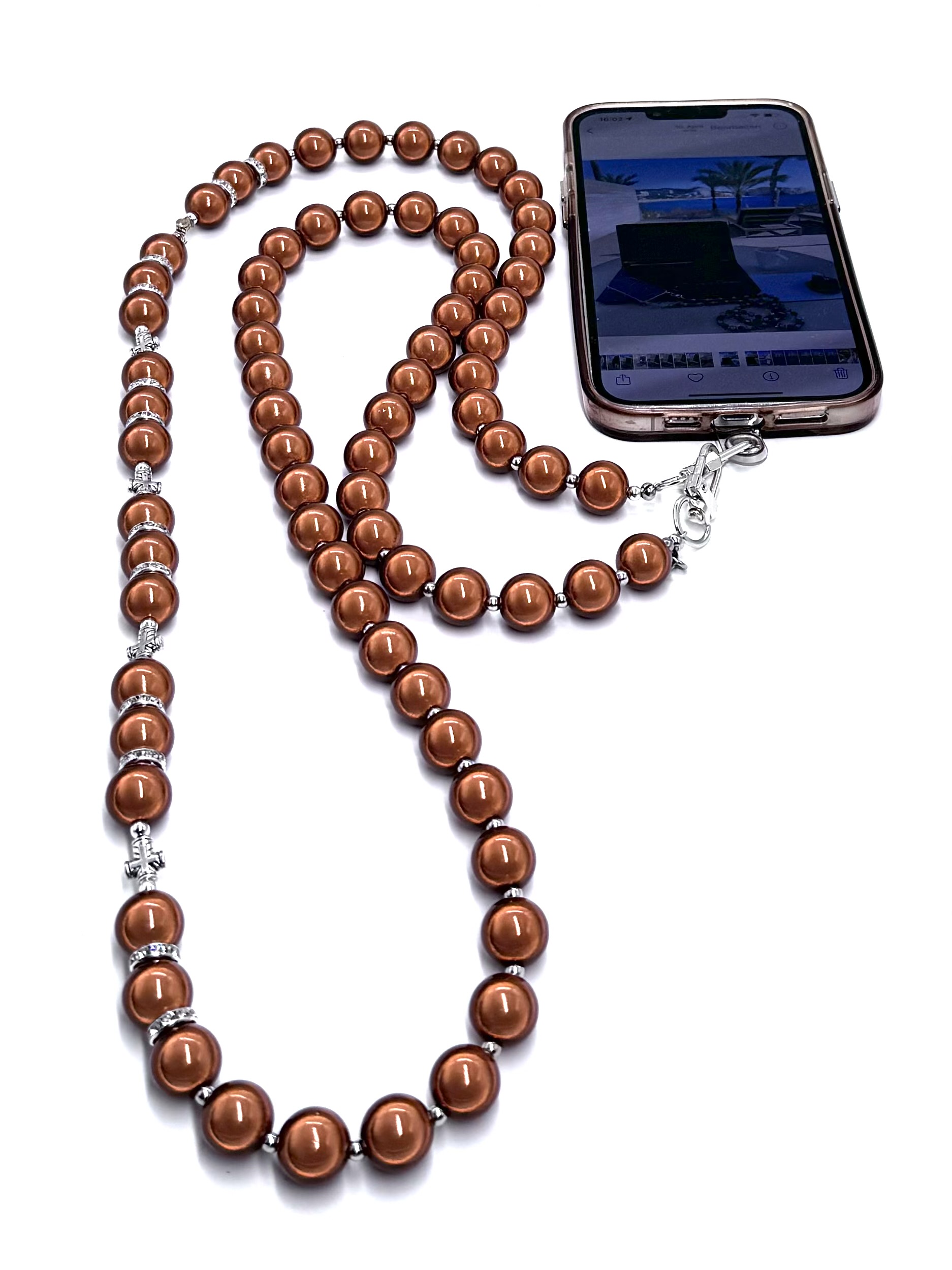 elegante Illumination Handykette – Perlenkette – UNIKAT- Kreuze – STRASS- dark-coffee