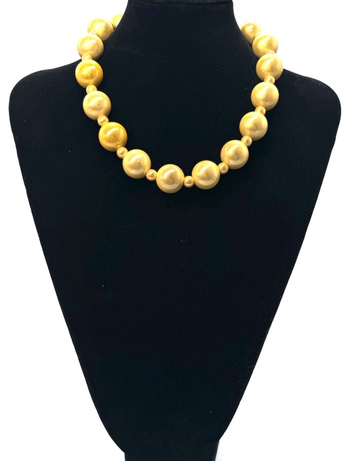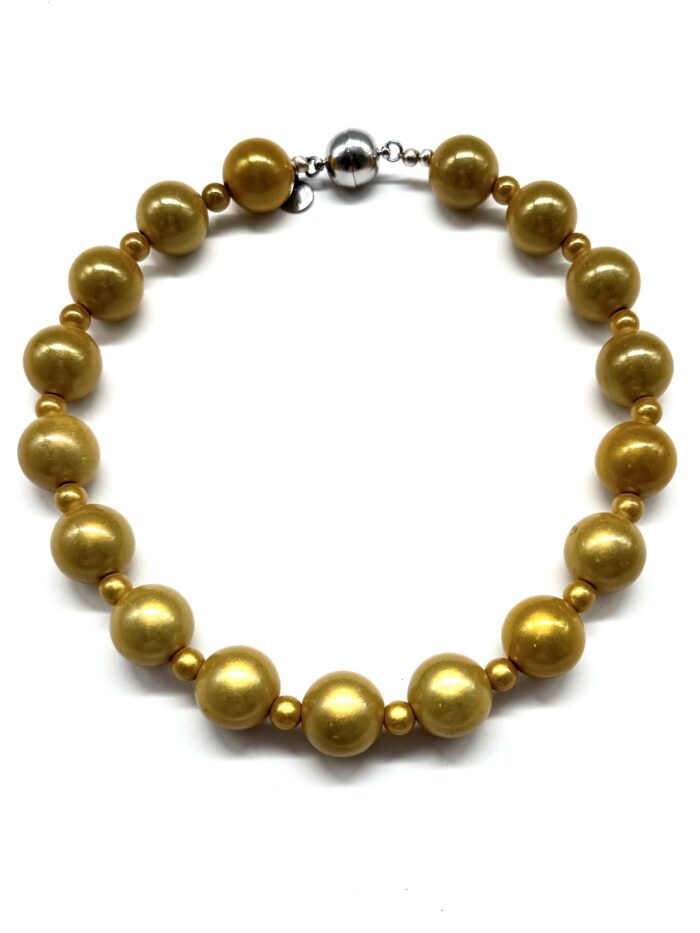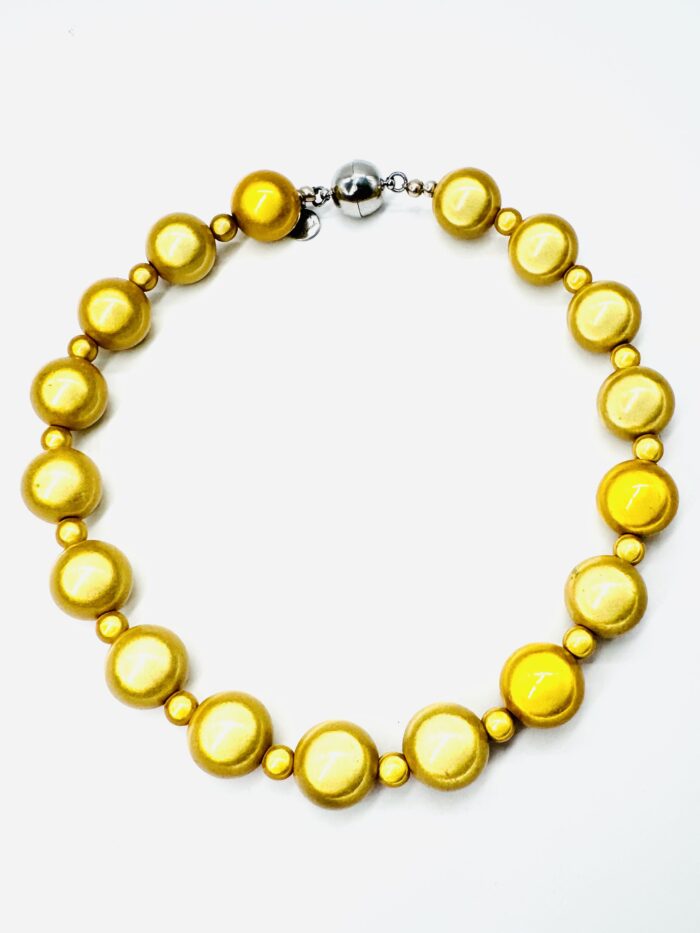 Collier-Halskette 20 mm große Leucht-Perlen Magnetverschluss goldgelb