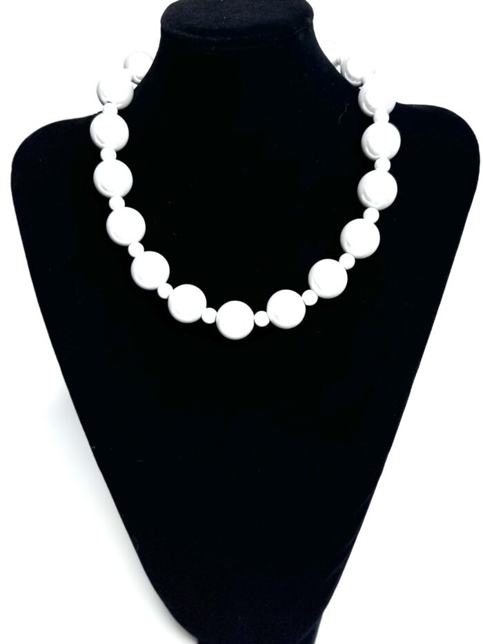 Collier-Halskette 20 mm große Leucht-Perlen Magnetverschluss weiss