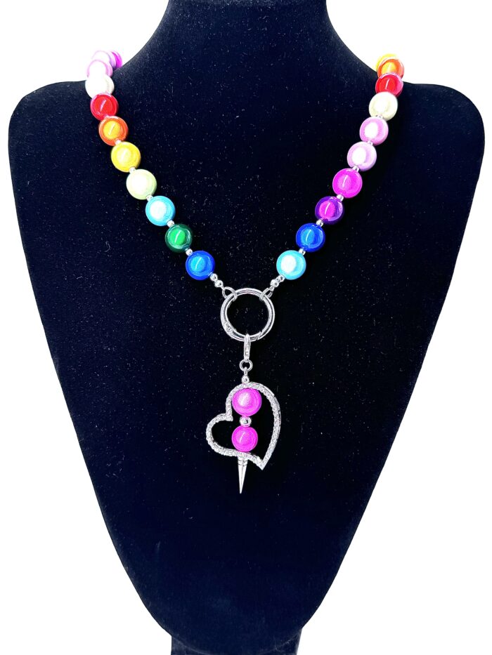 eleganter Wechselketten-Handy-Ketten-Anhänger grosses 3-D Herz Strass Rainbow