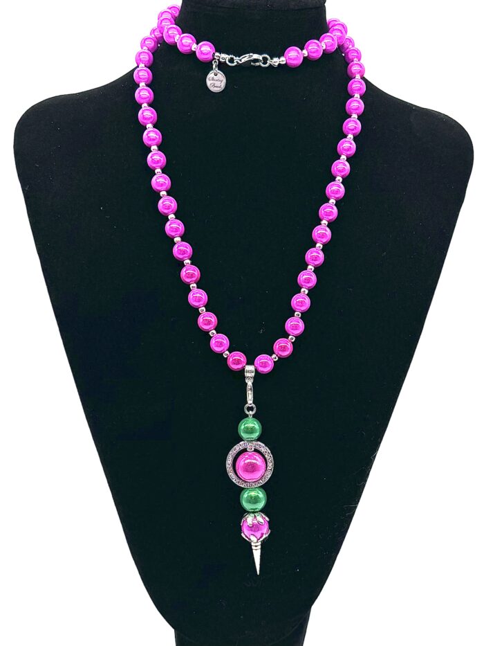Startseite Shop Damen Wechselketten-kurze Handyketten elegante Wechsel-Collier-Kette-Illumination-Pearls bright pink 72 cm Länge