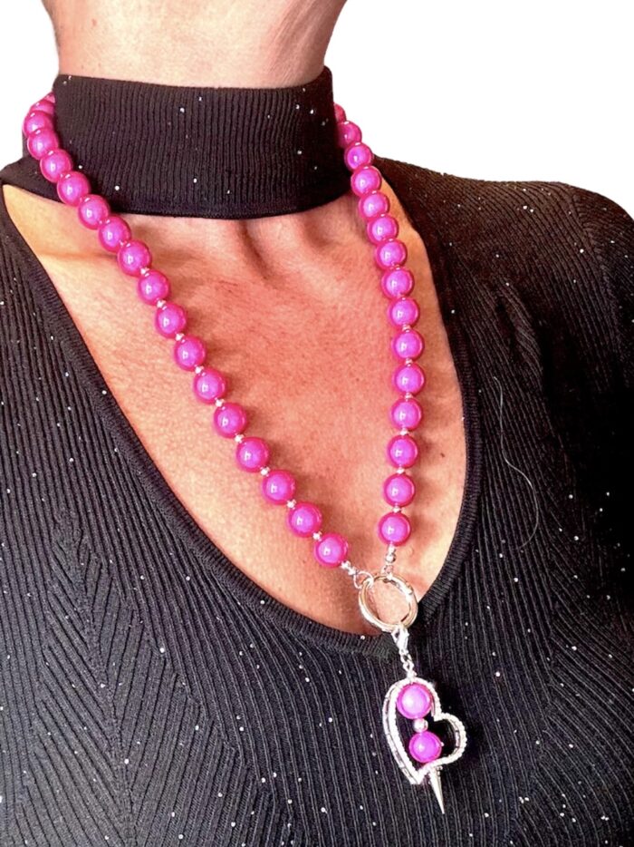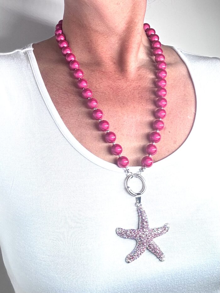 Startseite Shop Damen Wechselketten-kurze Handyketten elegante Wechsel-Kette-Handykette-Illumination-Pearls fuchsia-pink 3 Größen