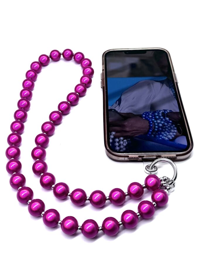 elegante Wechsel-Kette-Handykette-Illumination-Pearls fuchsia-pink 3 Größen